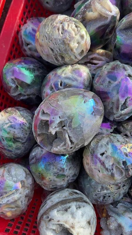 Aura Coated Sphalerite Egg Carving