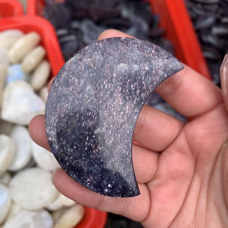 Ilolite Sunstone Cordierite Moon Freeform Heart Palm Stone