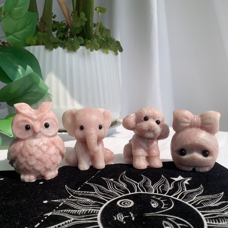 Pink Opal is treated with a oil coating to enhance its color. The coating may dry over time, causing a white haze.