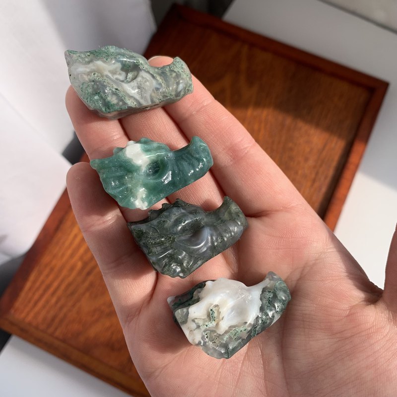Mini Moss Agate Dragon Skull Dragon Head 35mm